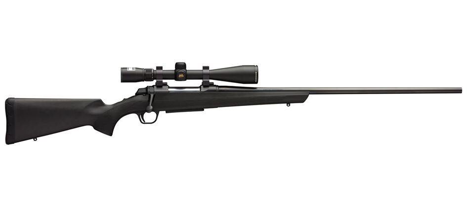 Black composite, matte blued barrel, included Nikon Buckmaster II 4-12×40 BDC scope, mounted and bore-sighted, Browning weaver style bases and rings.